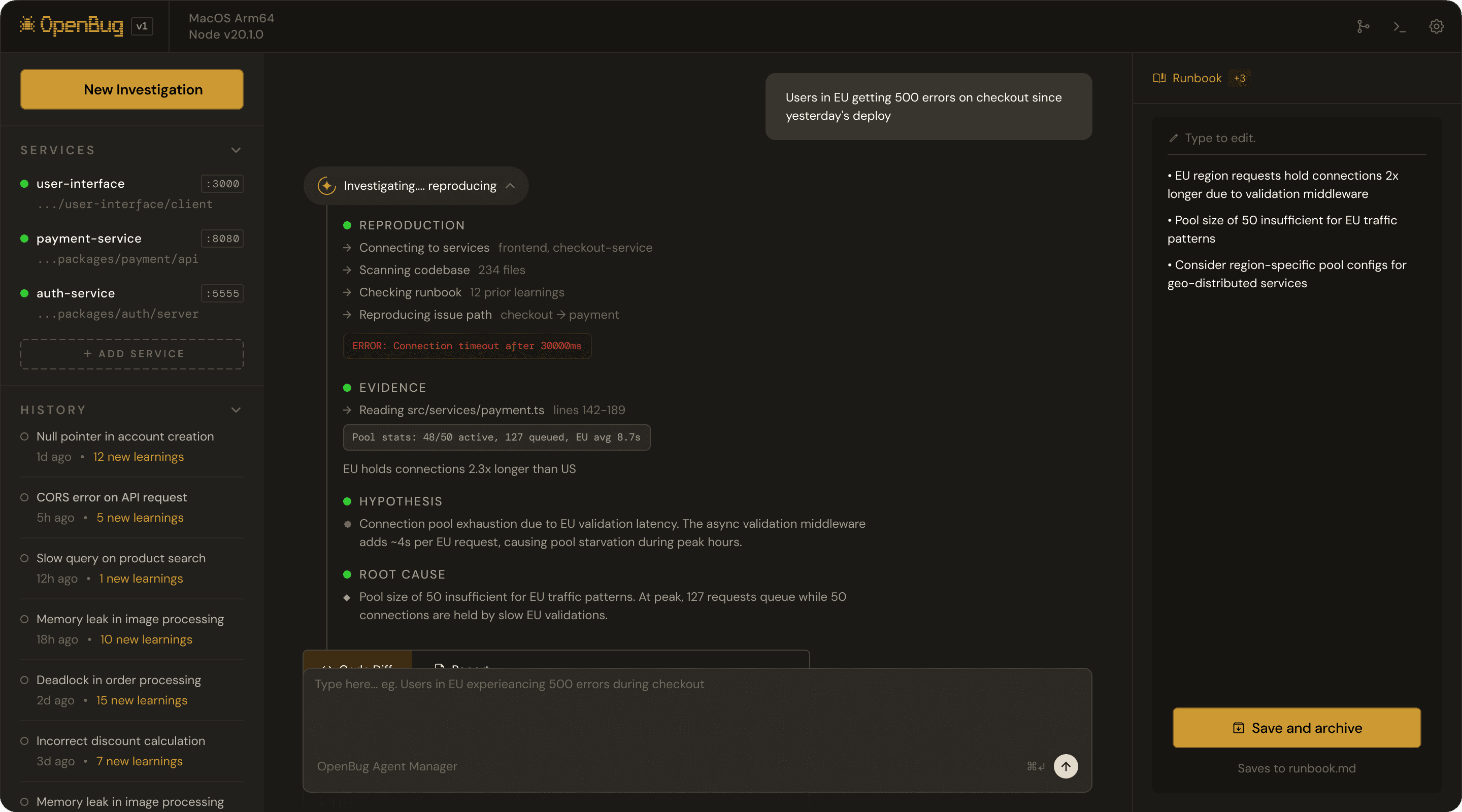 Paste a bug ticket. OpenBug investigates and delivers a fix.
